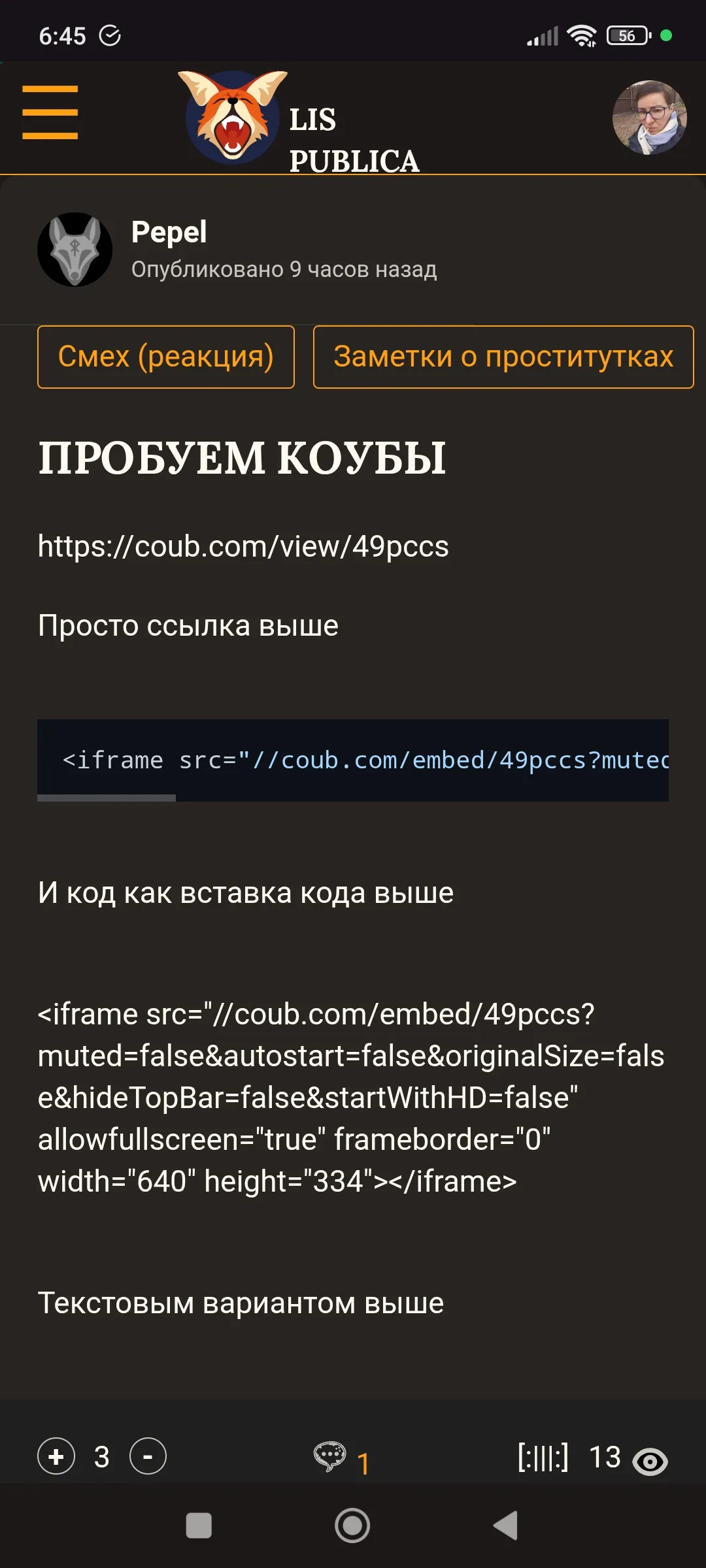 <iframe src="//coub.com/embed/49pccs?muted=false&autostart=false&originalSize=false&hideTopBar=false&startWithHD=false" allowfullscreen="true" frameborder="0" width="640" height="334"></iframe>