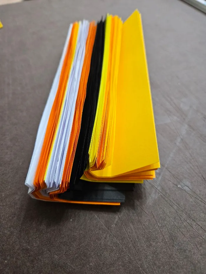 Что же, листик а4 делим пополам, получаем два листика a5, а дальше все по той же инструкции делаем. Покупаем цветную бумагу, побольше клея и вперед! Все, больше свободного времени у нас не бывает!