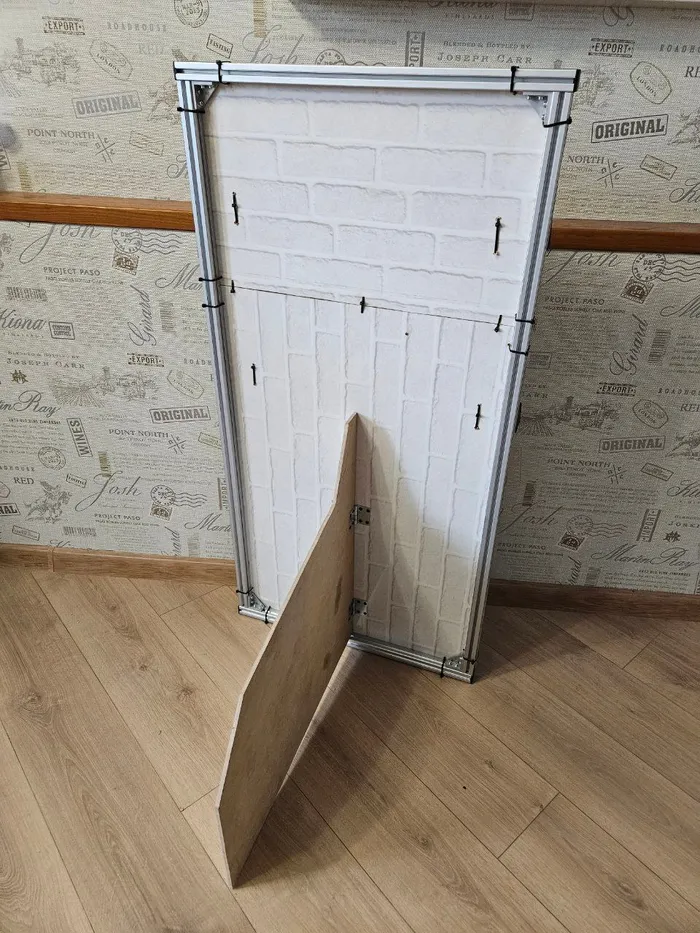 Тут вариантов реализации много, но берем то, что есть в хозяйстве и осталось от старых проектов: конструкционный профиль, фартук кухни, пару брусков, стяжки, вытяжные заклепки, петли и покупаем пару баллончиков черной краски.