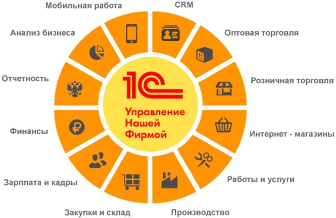 УНФ (Управление нашей фирмой) - конфигурация для простого учёта в части купи-продай и отражения одноэтапных производственных операций. Часто слышу, что вместо сложного и дорогого внедрения ERP некоторые средние бизнесы выбрали УНФ и напильник под себя. Основная разница с ERP - количество аналитик. Но с другой стороны - на её базе часто сильно проще сделать то, что нужно заказчику, да и сама конфигурация сильно проще. Требует рядом БП.