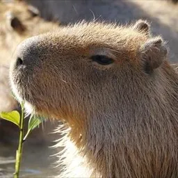 Гиф анимация Милое животное с ножкой курицы и напитком в кружке