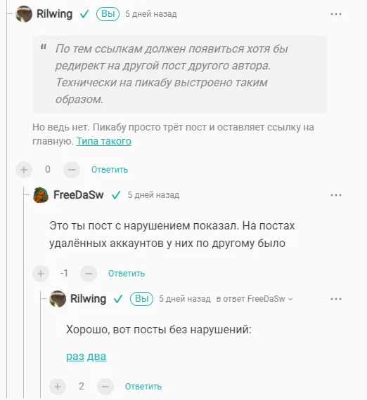 И чтоб два раза не вставать, недавно было обсуждение с @FreeDaSw в комментариях по поводу удаления постов, хотелось бы всё-таки ответ получить. На пикабу заходишь в удалённый пост и сразу видишь причину удаления. А тут сиди гадай.